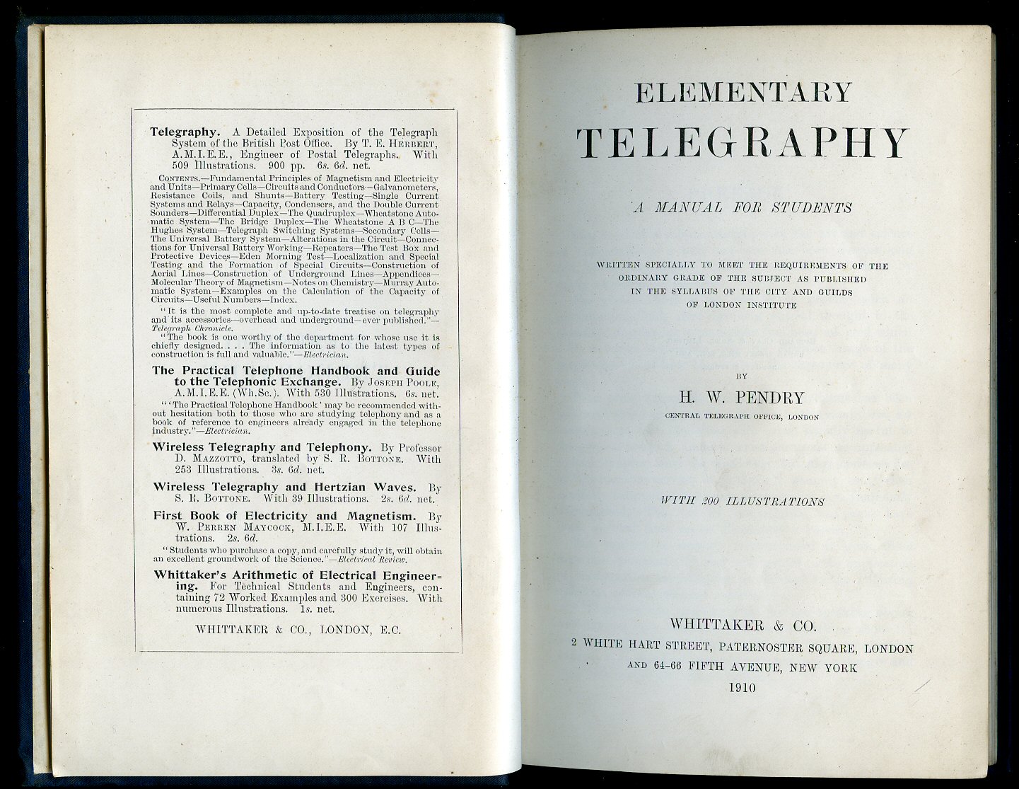 Published by Whittaker & Co., 2 White Hart Street, Paternoster Square, London First Edition 1910. 1910.