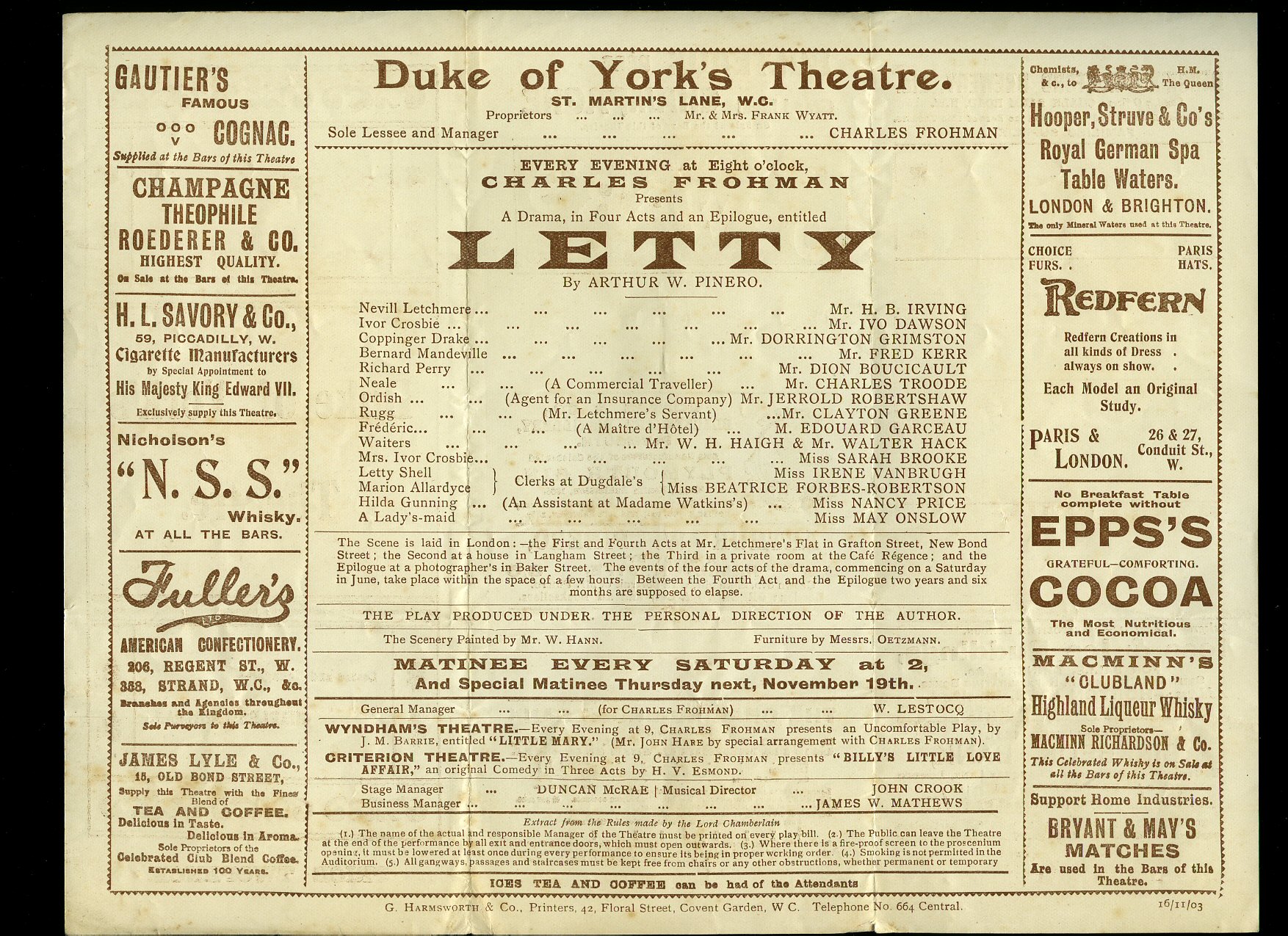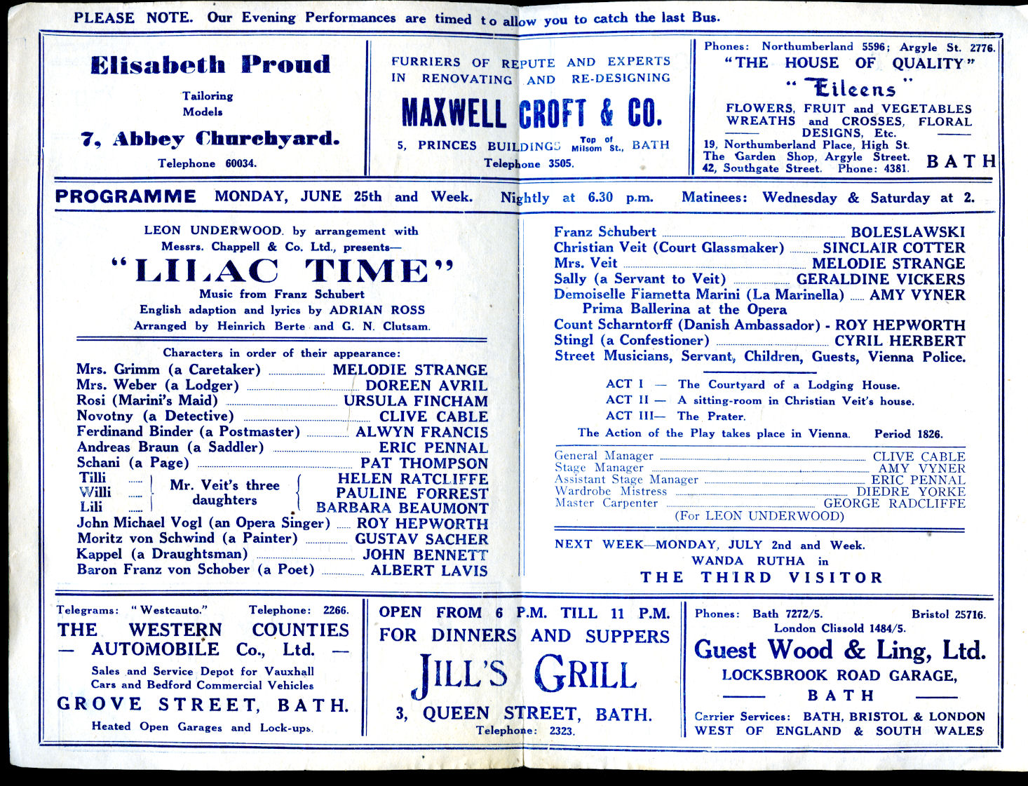 Performance Programme Dated First Night Performance Friday 12th December 1958. 1958.