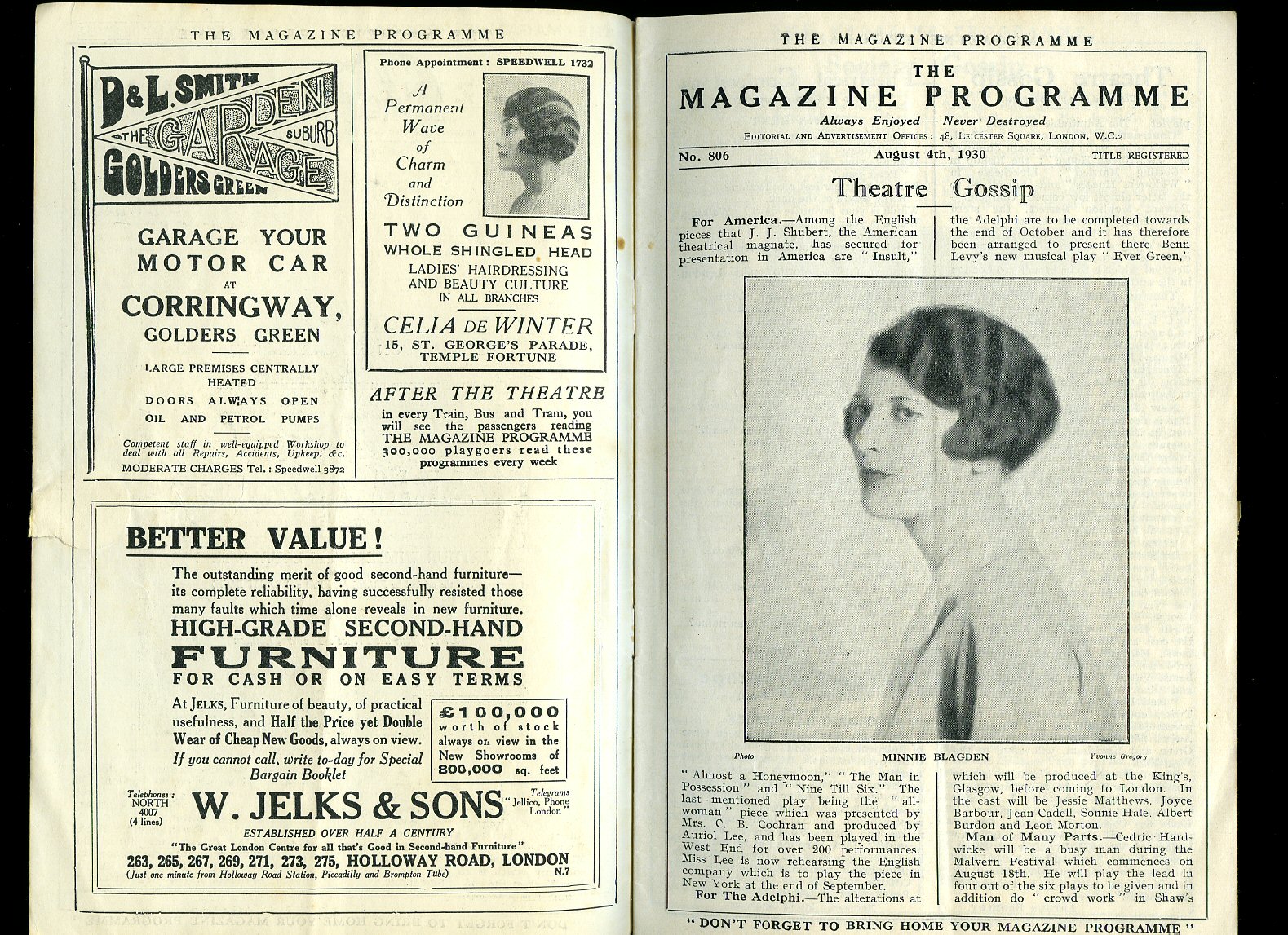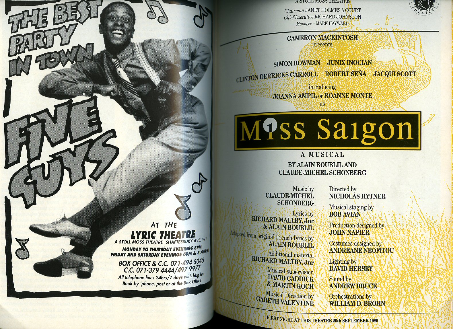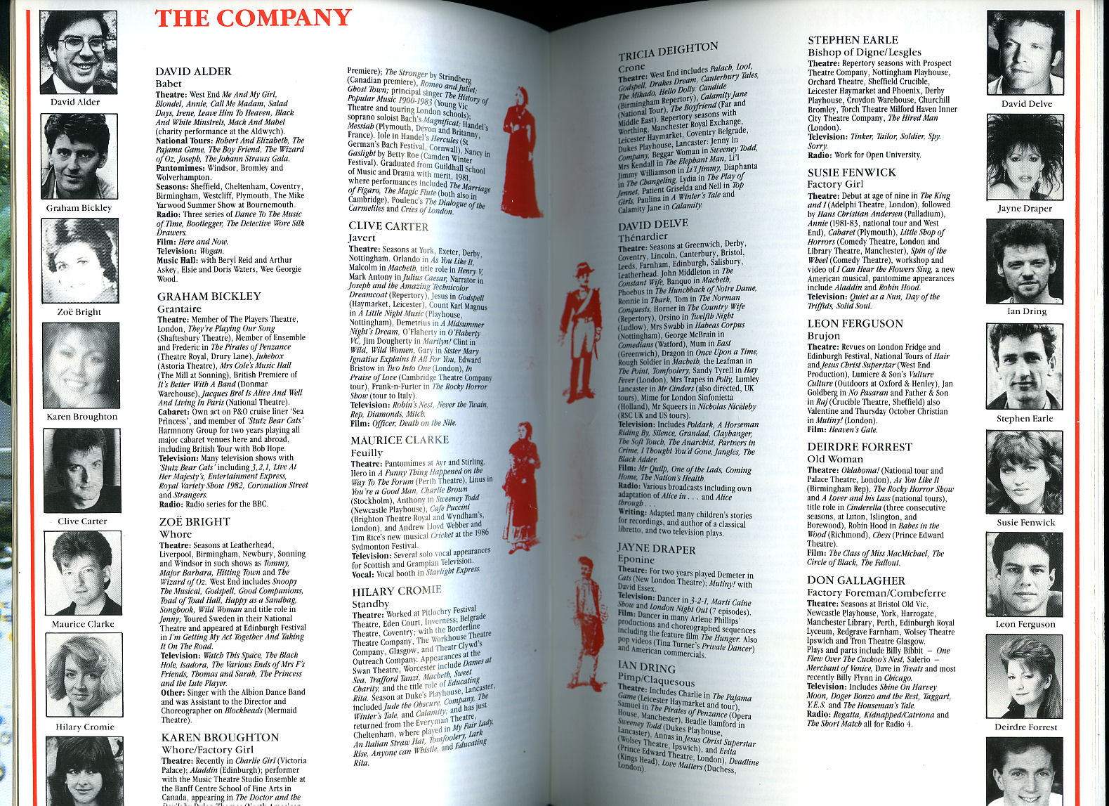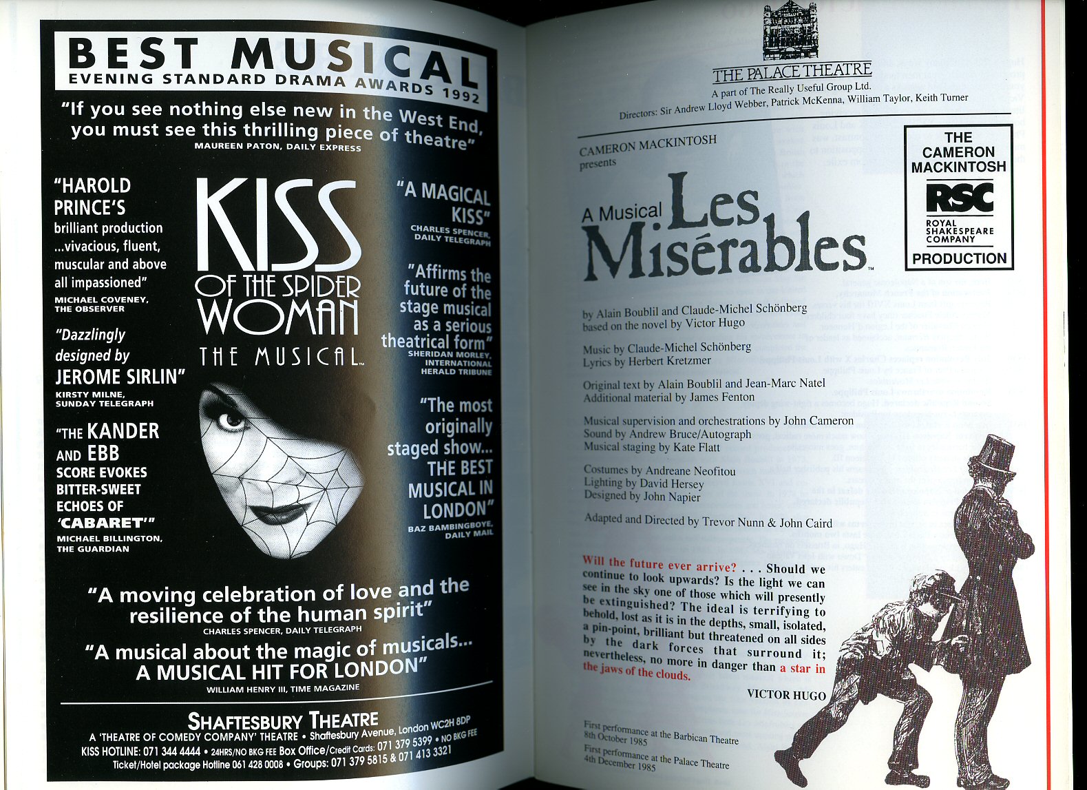 Original stapled illustrated souvenir theatre programme 9½'' x 7½''. Contains 16 printed pages of text, advertisements and photographs of the characters from the musical. Crease line across the front cover and in Very Good condition. Member of the P.B.F.A.