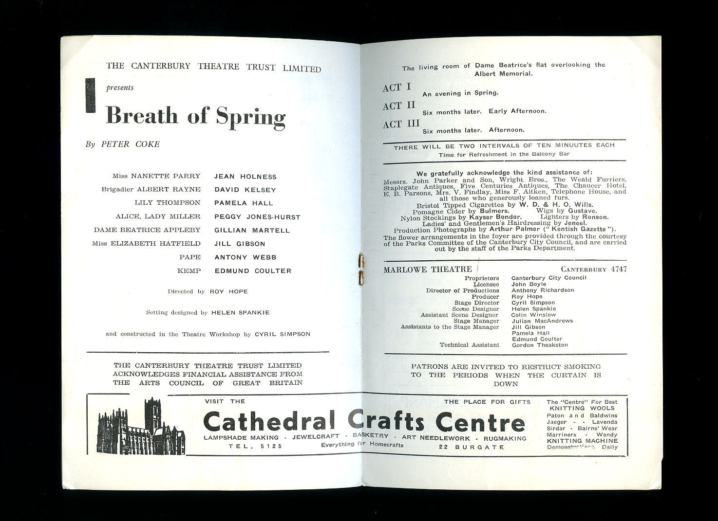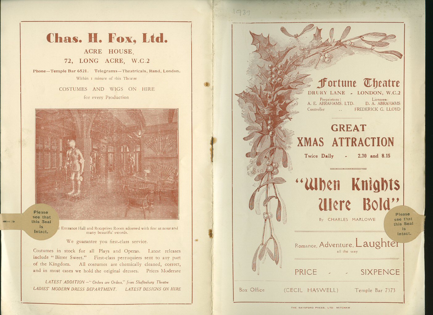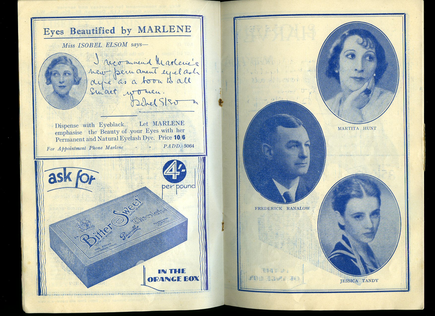 Original stapled illustrated souvenir theatre programme 8½'' x 5½''. Contains 16 printed pages of text with monochrome photographs from the play and illustrated advertisements. In Very Good condition. Member of the P.B.F.A.