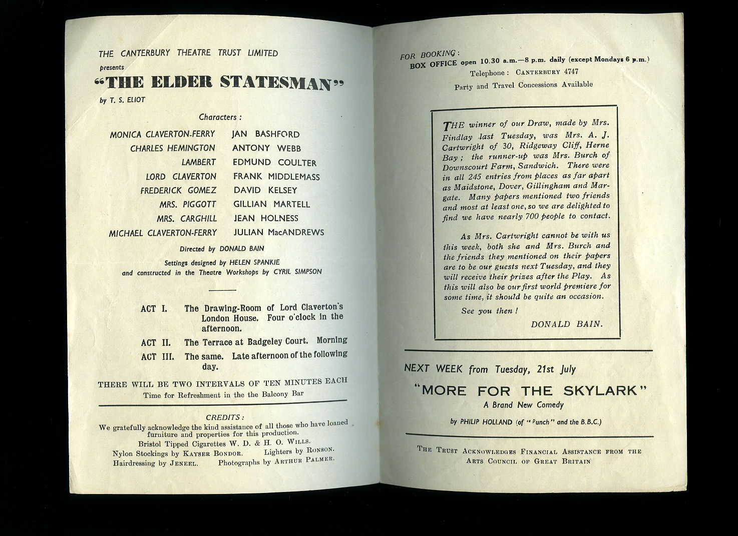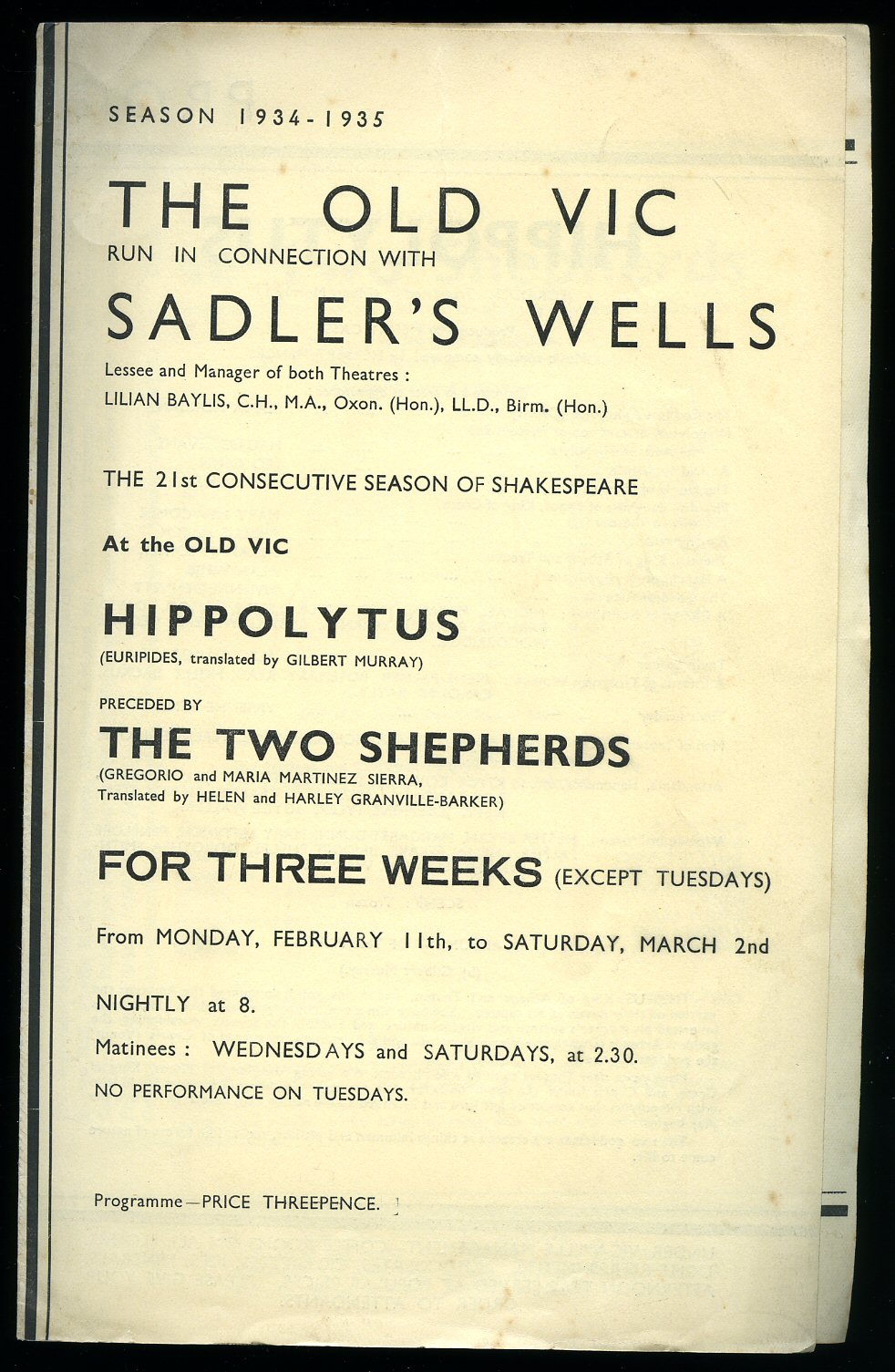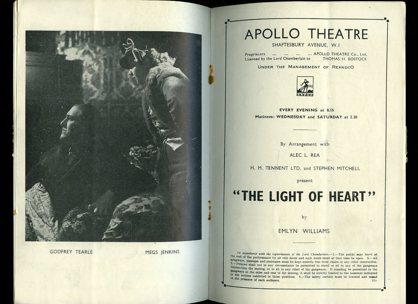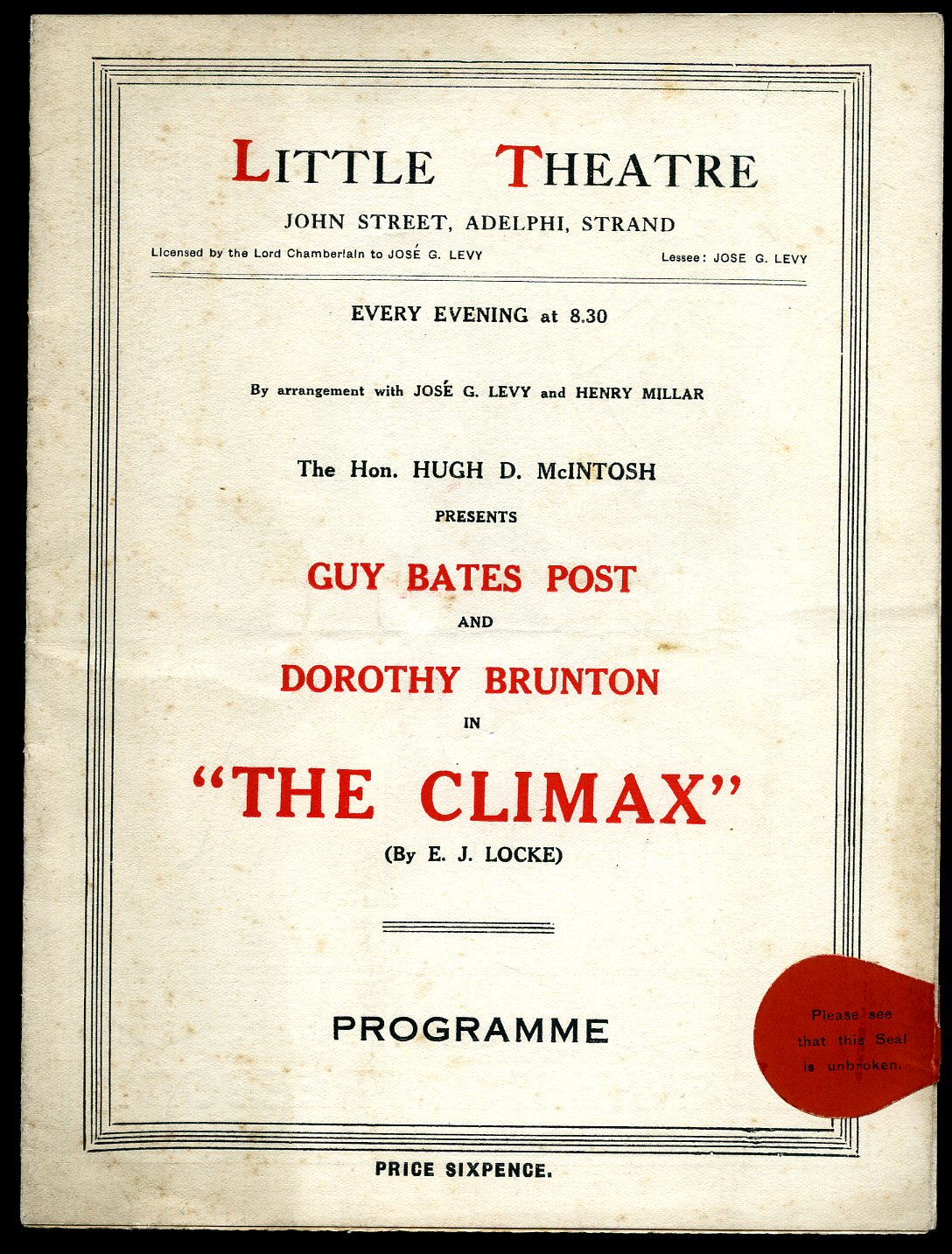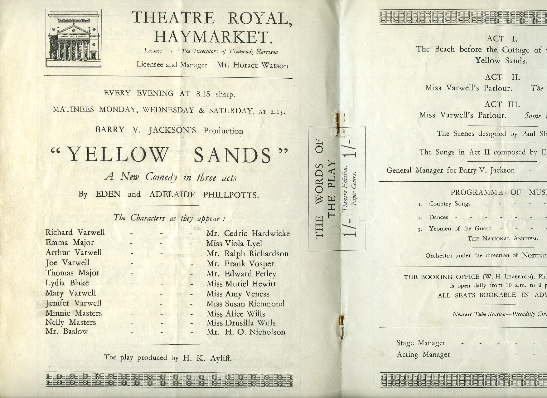 Original stapled souvenir theatre programme 8½'' x 5½''. Contains 16 printed pages of text with monochrome illustrated advertisements. In Very Good condition. Member of the P.B.F.A.