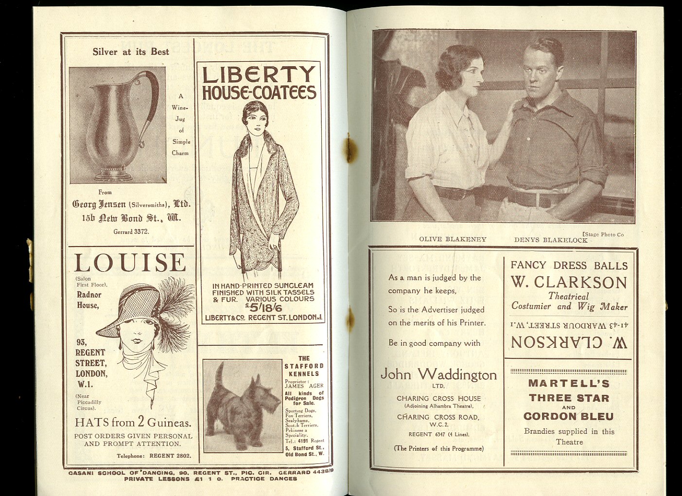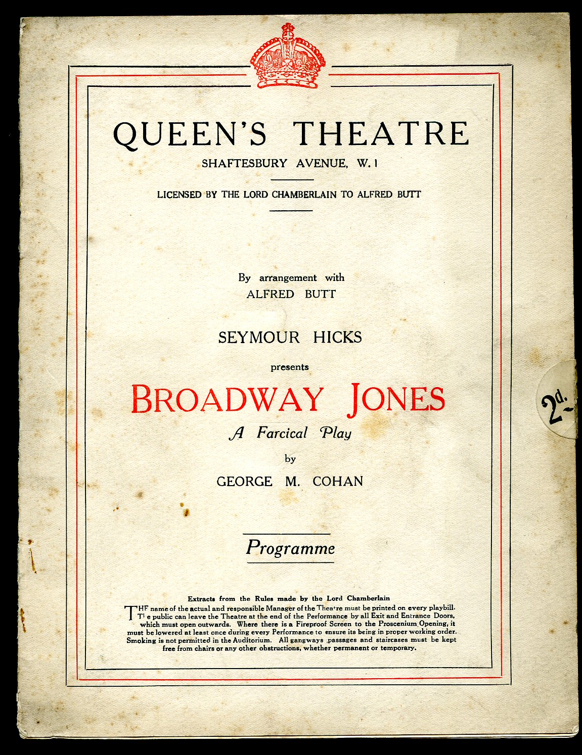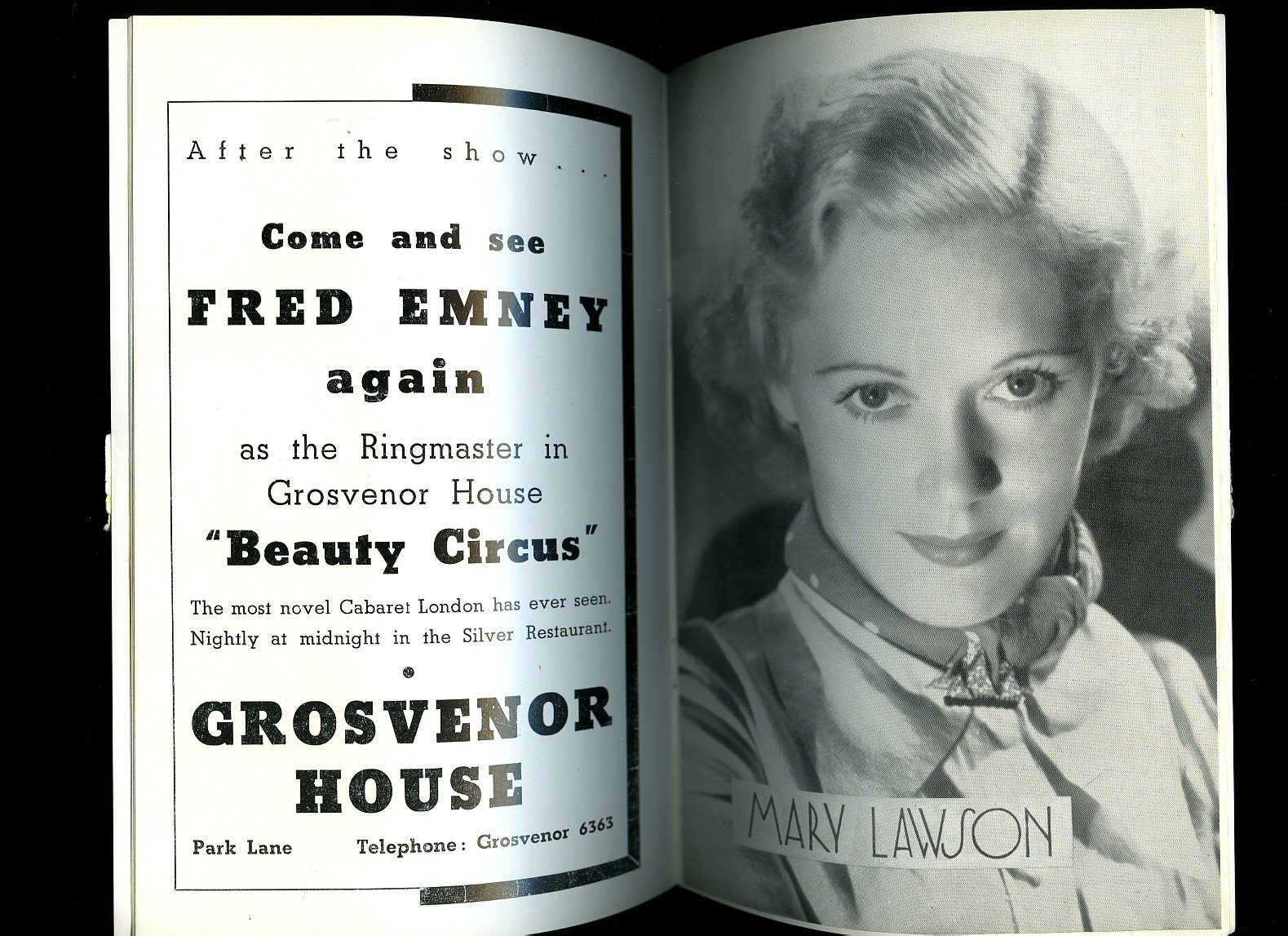 Original souvenir theatre programme 8'' x 5'' on light green paper with russet coloured printing. Contains 4 printed pages of text with illustrated advertisement to the lower cover of the Grand Cafe Restaurant, 435 Strand, London. In Very Good condition with small thumb nail chip to the top right hand corner. Member of the P.B.F.A.