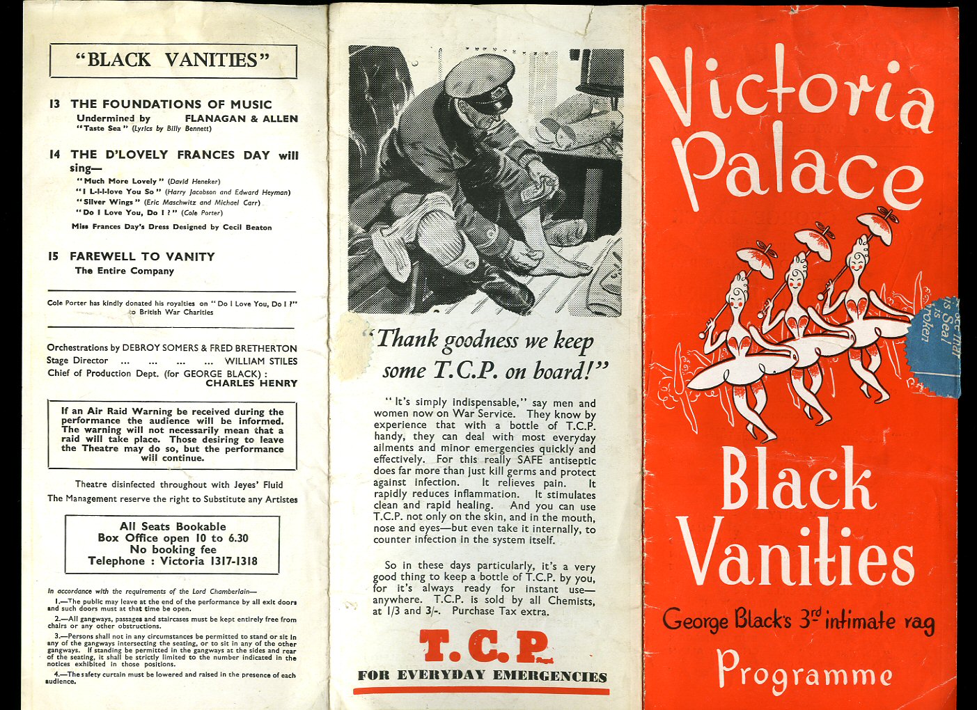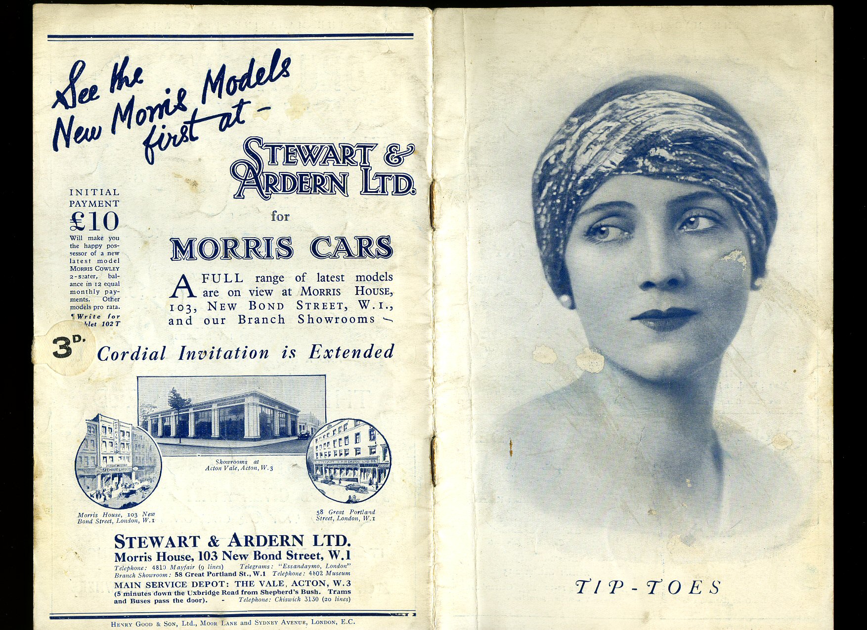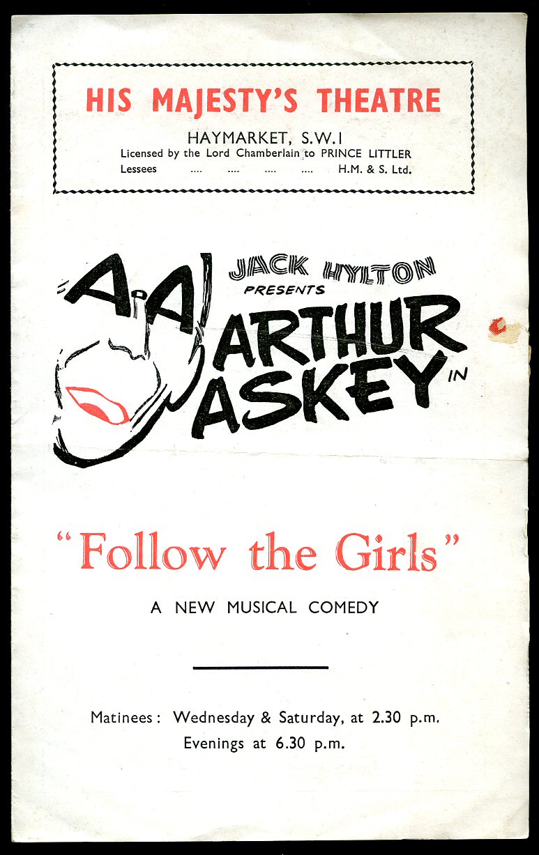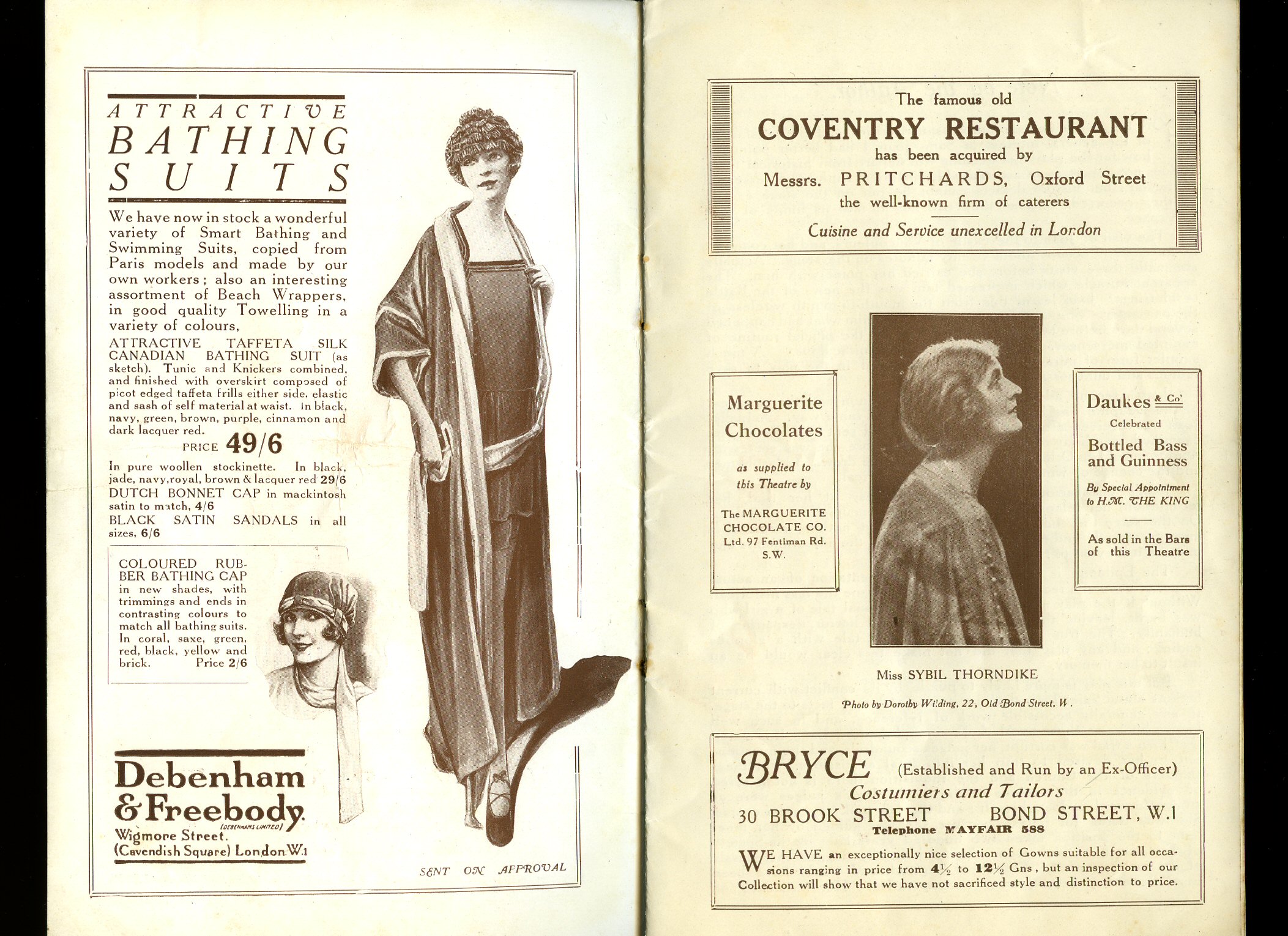 Original souvenir theatre programme 8'' x 5'' on light green paper with russet coloured printing. Contains 4 printed pages of text with illustrated advertisement to the lower cover of the Grand Cafe Restaurant, 435 Strand, London. In Very Good condition with small thumb nail chip to the top right hand corner. Member of the P.B.F.A.