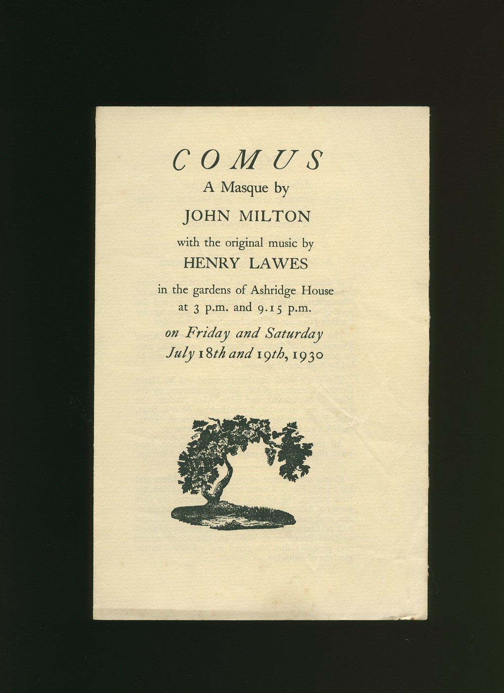 Comus A Masque by John Milton: Souvenir Programme Performed by the Ashridge Players in the Gardens of Ashridge House