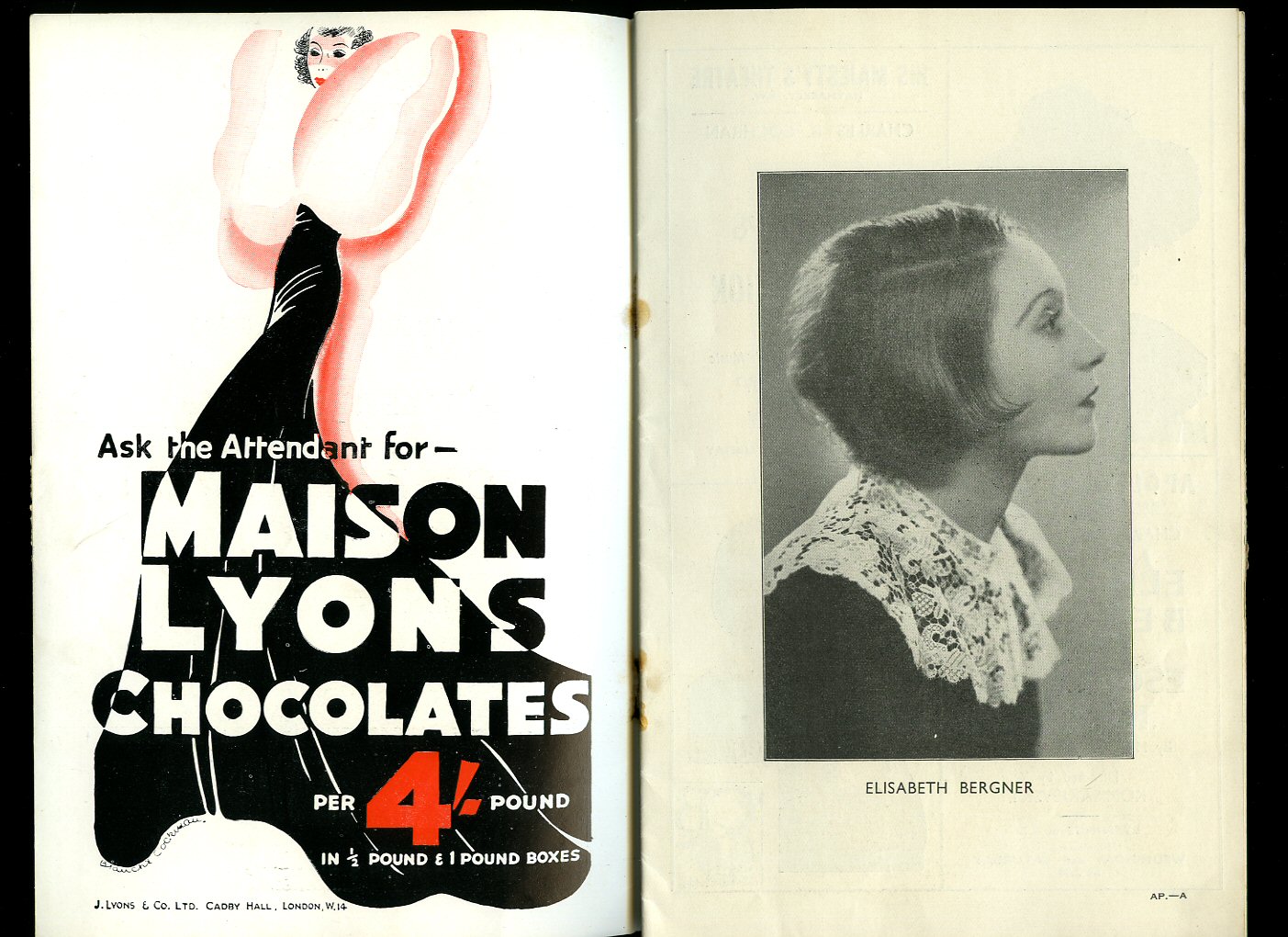 Original souvenir programme 9'' x 6''. Contains 4 printed pages. Comus was written in 1634 by John Milton and his friend, Henry Lawes, the Royalist musician, for their patron, the 1st Earl of Bridgewater, the then owner of Ashridge. In Very Good condition. Member of the P.B.F.A.