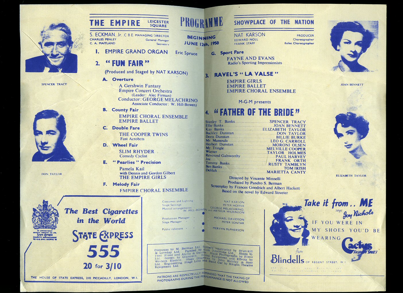 Original stapled illustrated souvenir theatre programme 8½'' x 5½''. Contains 12 printed pages of text with monochrome illustrated advertisements. In Very Good condition. Member of the P.B.F.A.