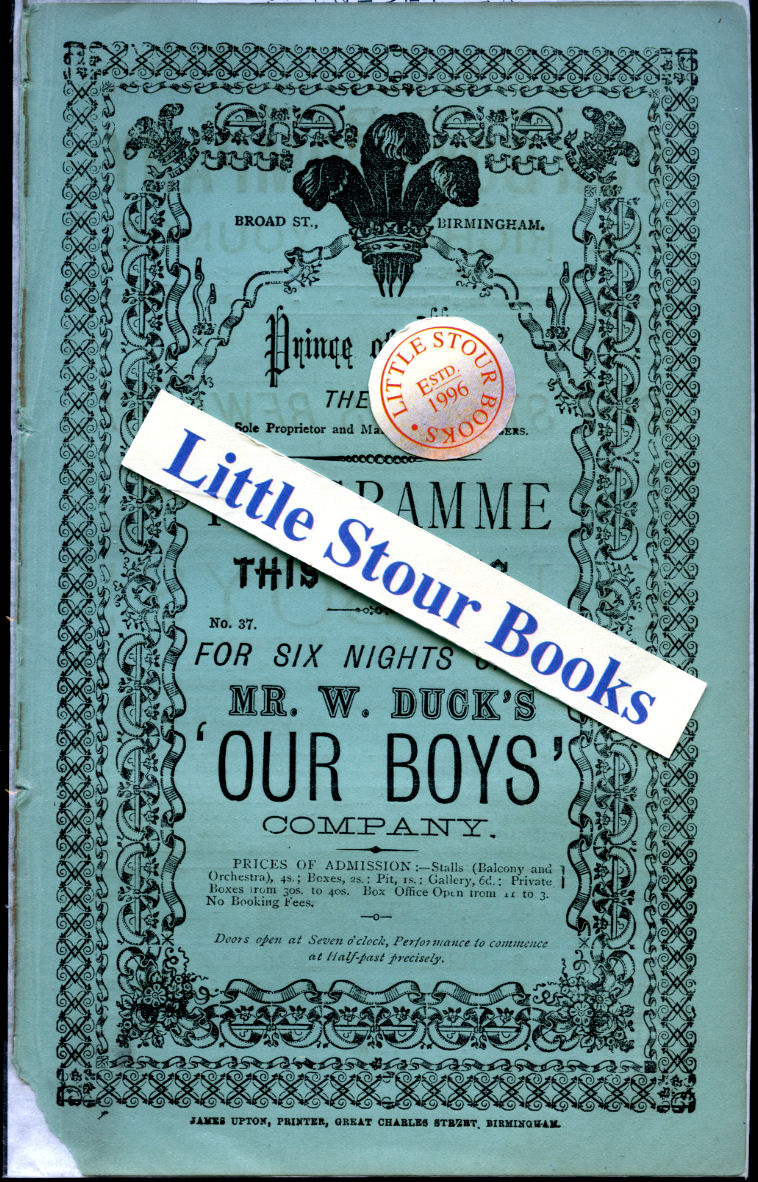 Original Vintage Souvenir Theatre Programme from the Prince of Wales Theatre, Broad Street, Birmingham (Formerly - The Royal Music Hall | Birmingham Music Hall | Prince of Wales Operetta House) With a Production For Six Nights Only Mr W. Duck's 'Our Boys' Company (Programme Number 37) 1875.