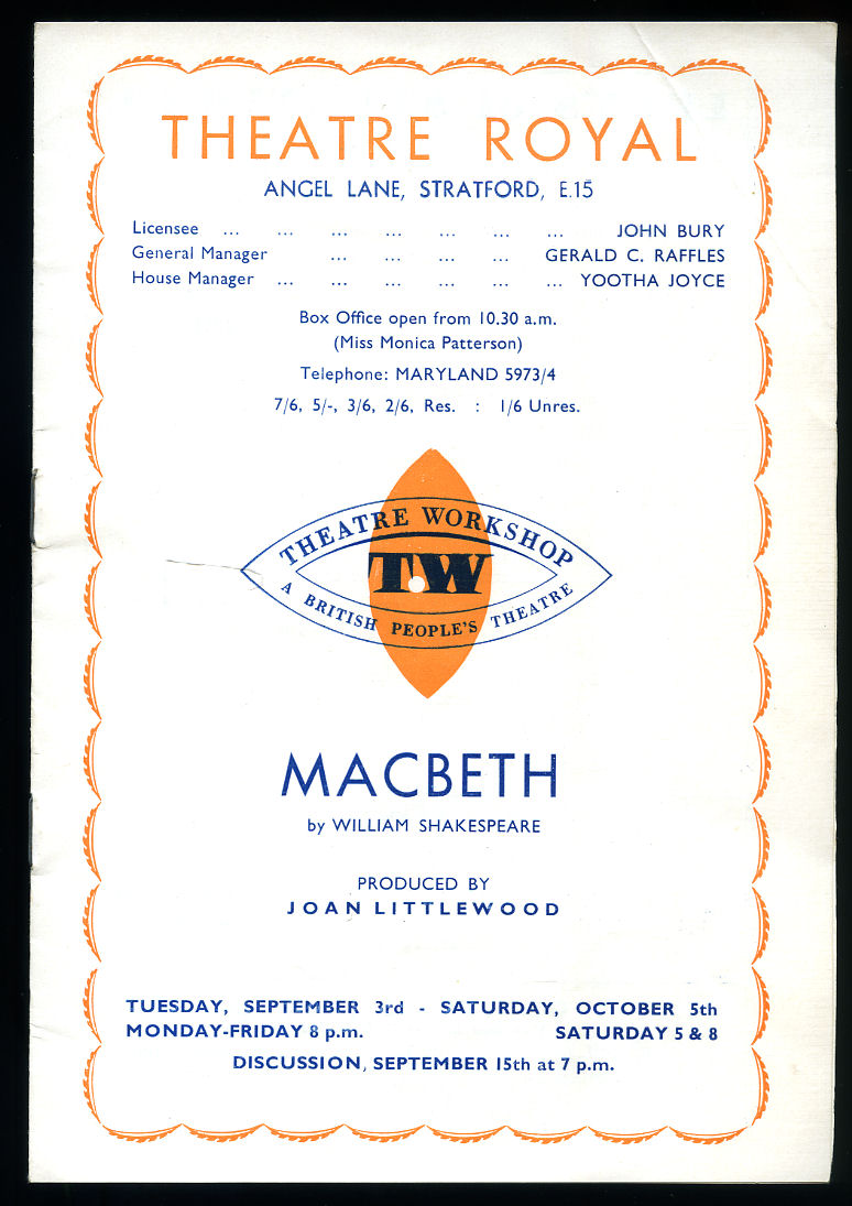 Macbeth | Souvenir Theatre Brochure Programme Performed at Theatre Royal, Angel Lane, Stratford, London