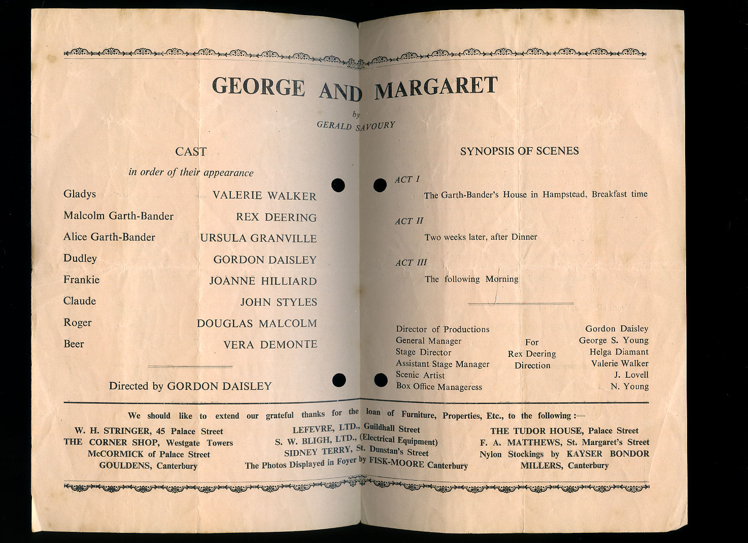 George and Margaret | Souvenir Theatre Brochure Programme Performed at The Marlowe Theatre, St. Margaret's Street, Canterbury, Kent | July 24th 1950.