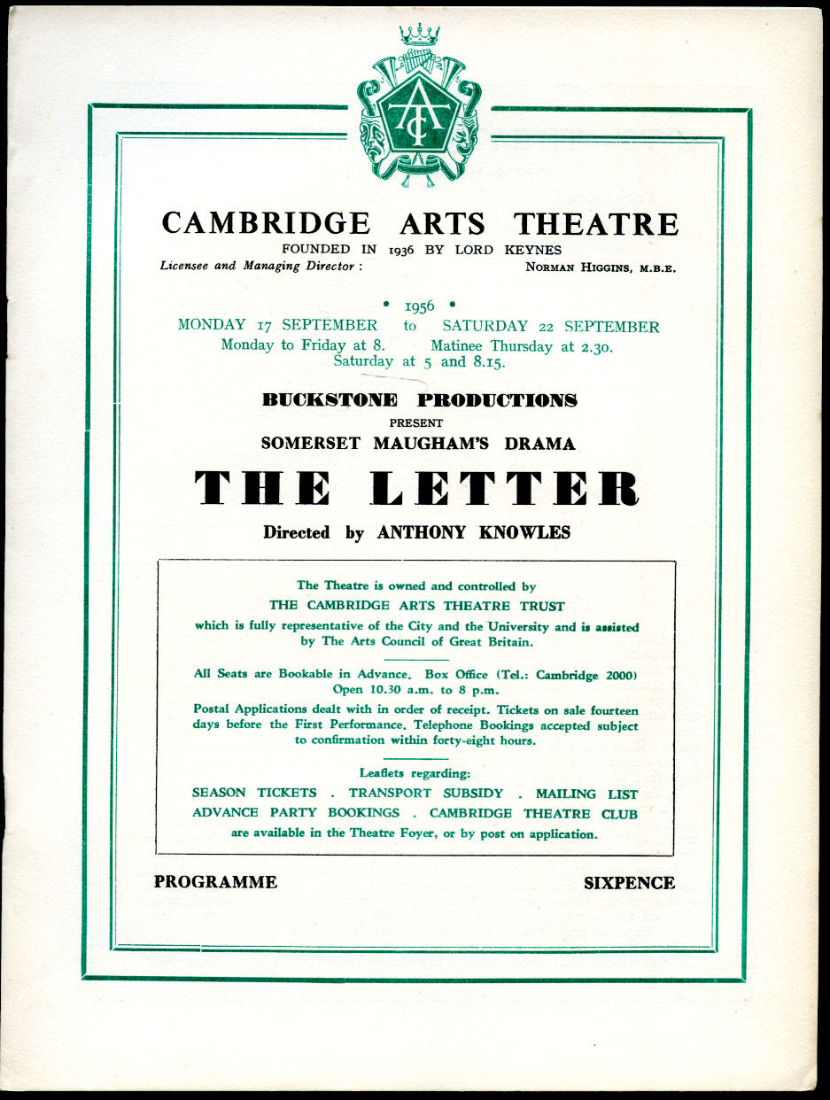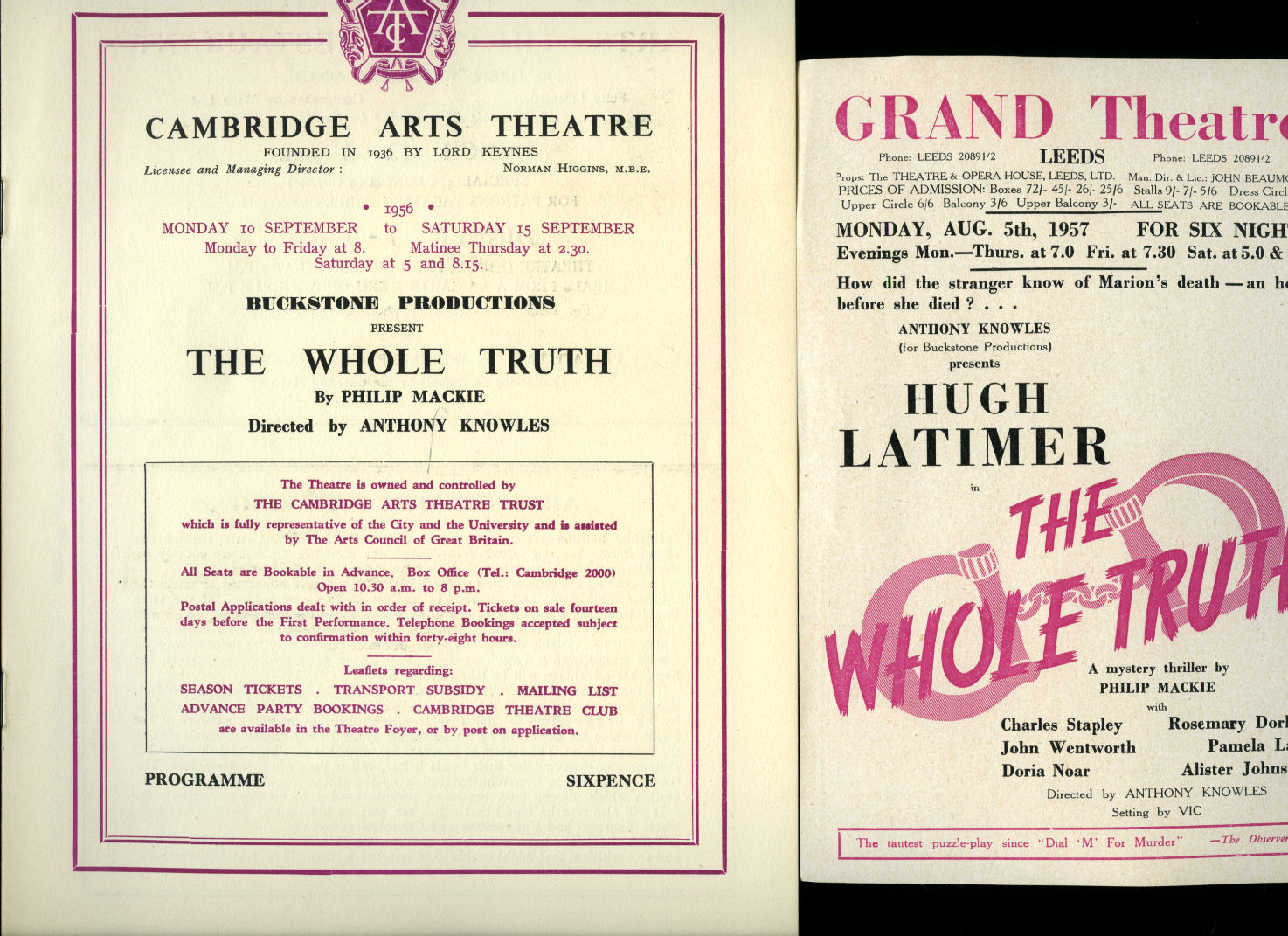 The Whole Truth | Original Souvenir Theatre Programme Performed at Cambridge Arts Theatre, 6 St. Edward's Passage, Cambridge | Buckstone Productions | 10 To 15 September, 1956 + Promotional Flyer of this Performance at Another Theatre