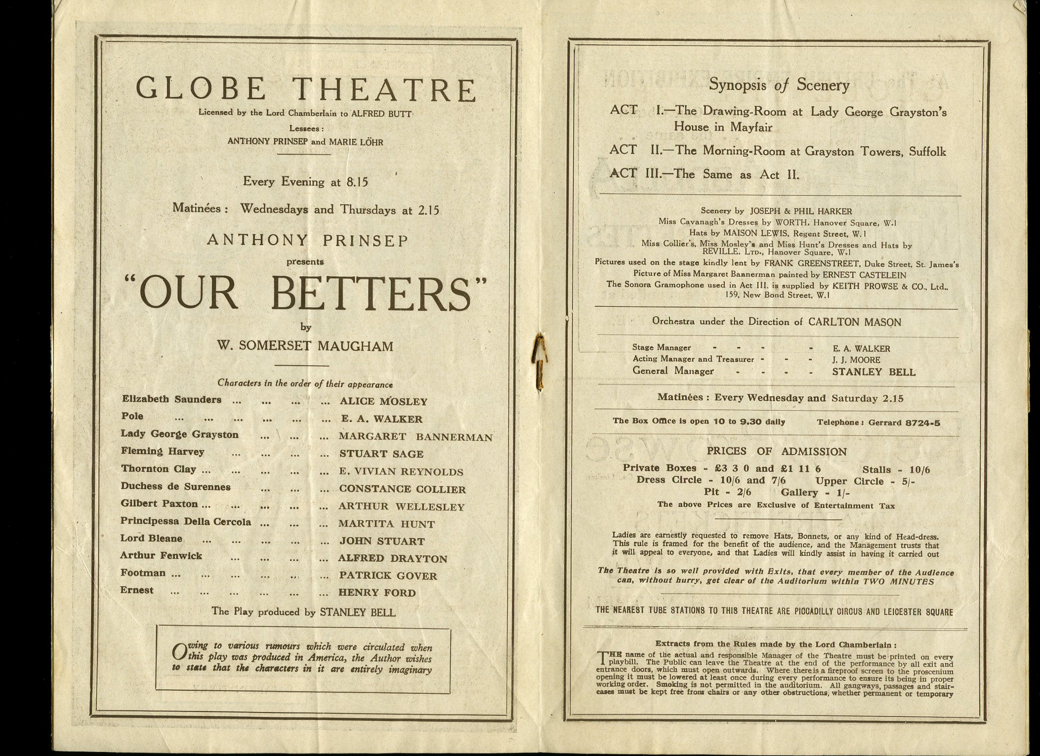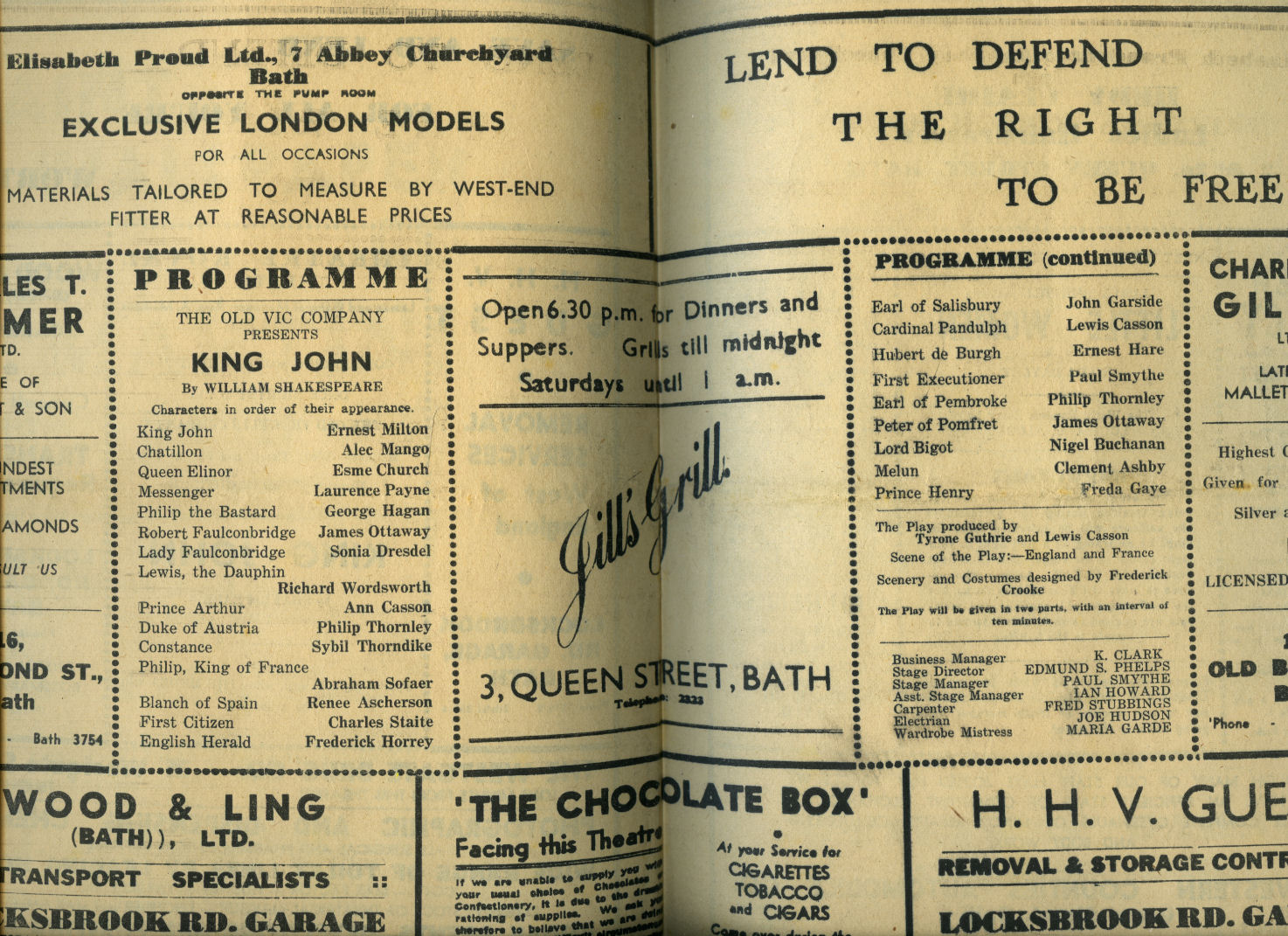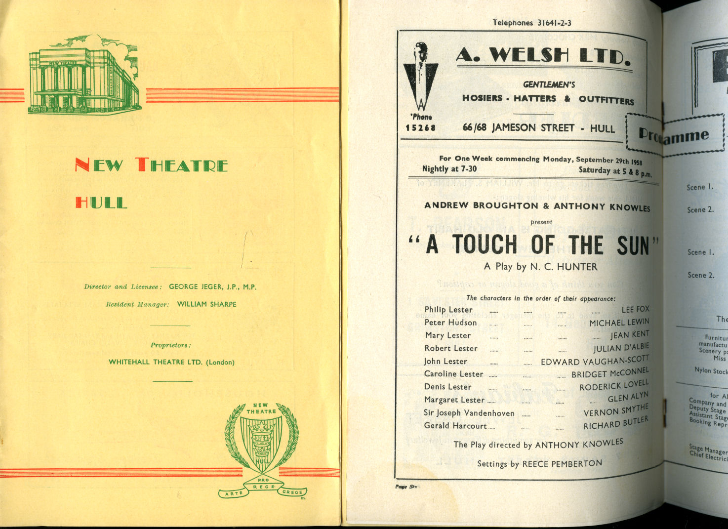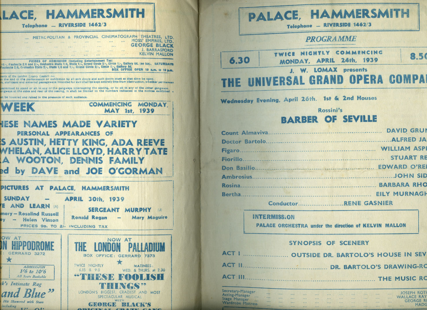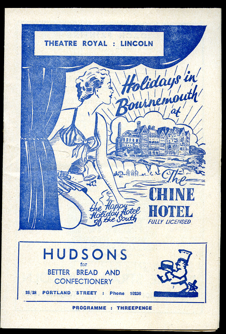 Original stapled souvenir theatre programme in cream paper covers. 9¾'' x 7¼''. Contains 8 pages including the covers, illustrated advertisements to the rear cover. In Fine condition. Member of the P.B.F.A.