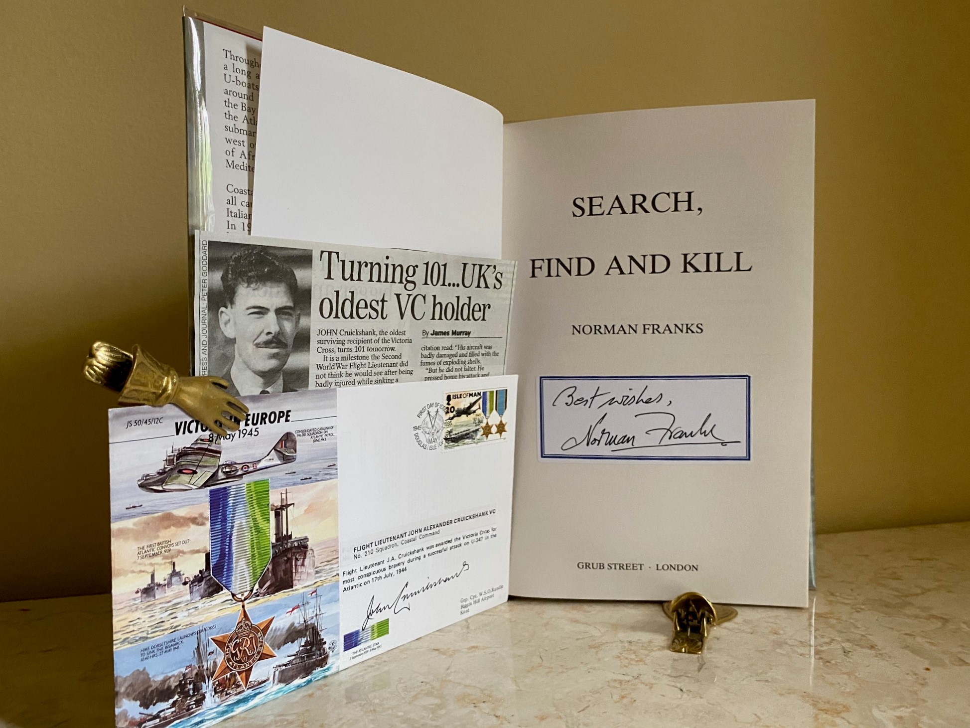 First edition in publisher's original illustrated card wrap covers (soft back). 8vo. 9½'' x 6¼''. Magennis was part of several operations involving X-Craft midget submarines in attacks on Axis ships. In July 1945, Magennis was serving on HMS XE3 during Operation Struggle. During an attack on the Japanese cruiser Takao in Singapore, Magennis showed extraordinary valour and bravery by leaving the submarine for a second time in order to free some explosive charges that had got caught, he is only person in naval history to exit a submarine in a diving suit, perform a military operation and return to the same submarine. His commanding officer, Lieutenant Ian Edward Fraser, was also awarded the Victoria Cross for his actions during the operation. Contains 224 pp with monochrome archive photographs throughout. In Fine condition, supplied in archive acetate film protection. SIGNED by the author to the title page 'To Chris Maccabe C.B. (Associate Political Director) with compliments from George Fleming' + souvenir 130th Anniversary of the Institution of the Victoria Cross cover DOUBLE SIGNED 'Ian Fraser V.C.' and James J. Magennis V.C.' to the front cover, 29th January 1986 post marked stamp. Housed in Fine condition paper covered open-fronted slip case. Member of the P.B.F.A.