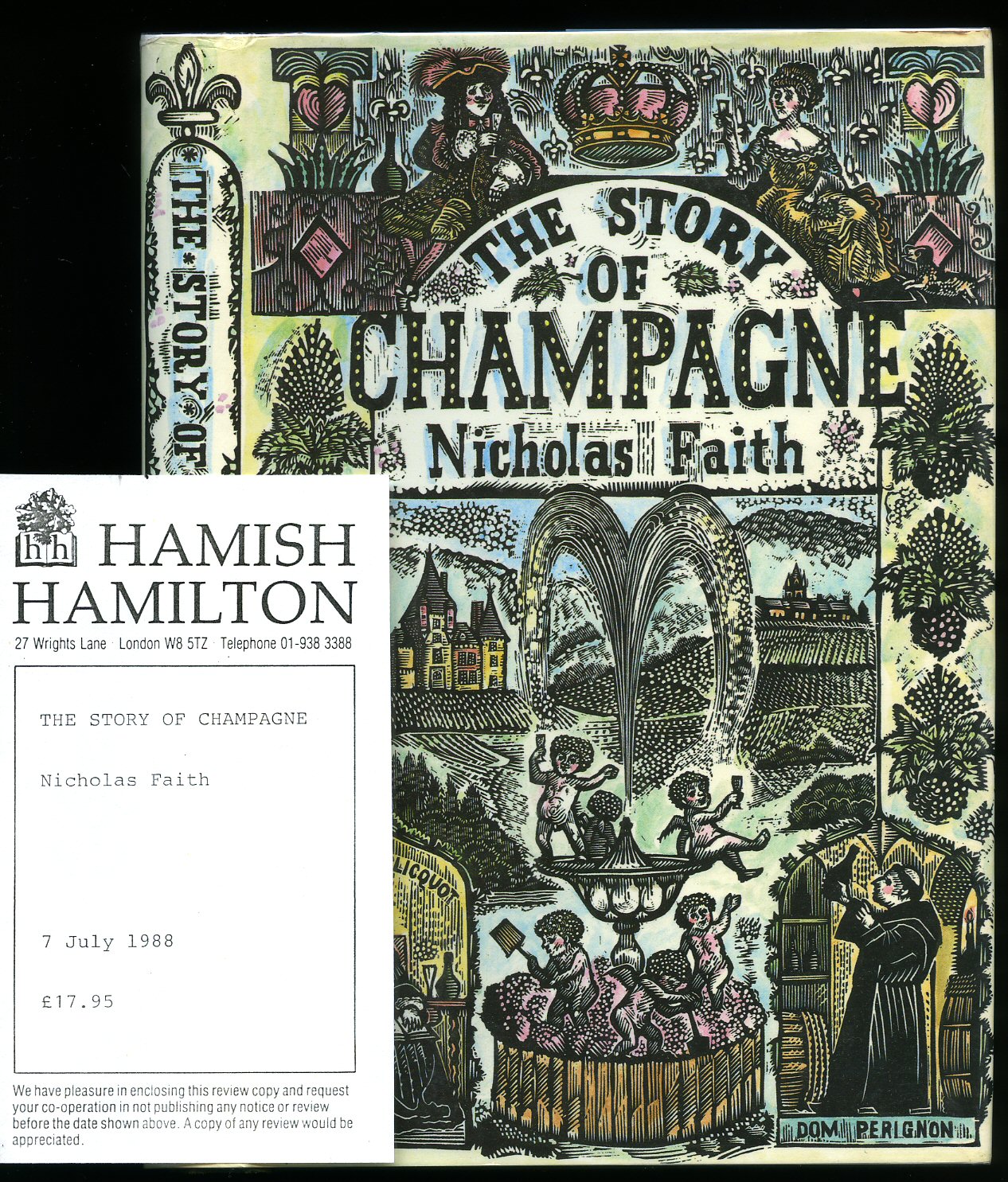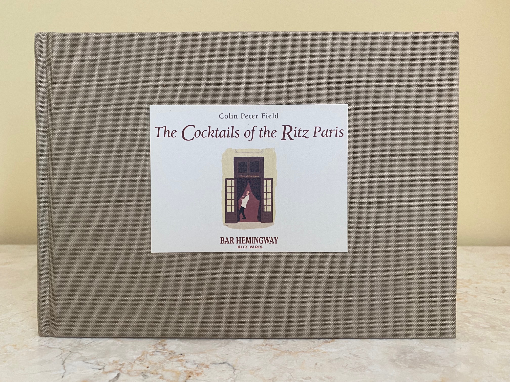 True first edition hard back binding in publisher's original bronze cloth covered boards, blocked and lettered maroon back, colour onlay to the front board, bronze lining papers. Landscape. 6'' x 8½''. Contains 144 pp with splendid full-page colour cartoon illustrations by Yoko Ueta throughout. Dust spotting to the top page edges, else in Fine condition, cigar band loosely inserted. SIGNED by the author to the front free end paper 'Thank you for being a friend of the Hemingway Bar | We hope that you shall remain for the next 20 years | But why do you always drink just Perrier? Colin Peter Field.' Scarce first edition signed. Member of the P.B.F.A.