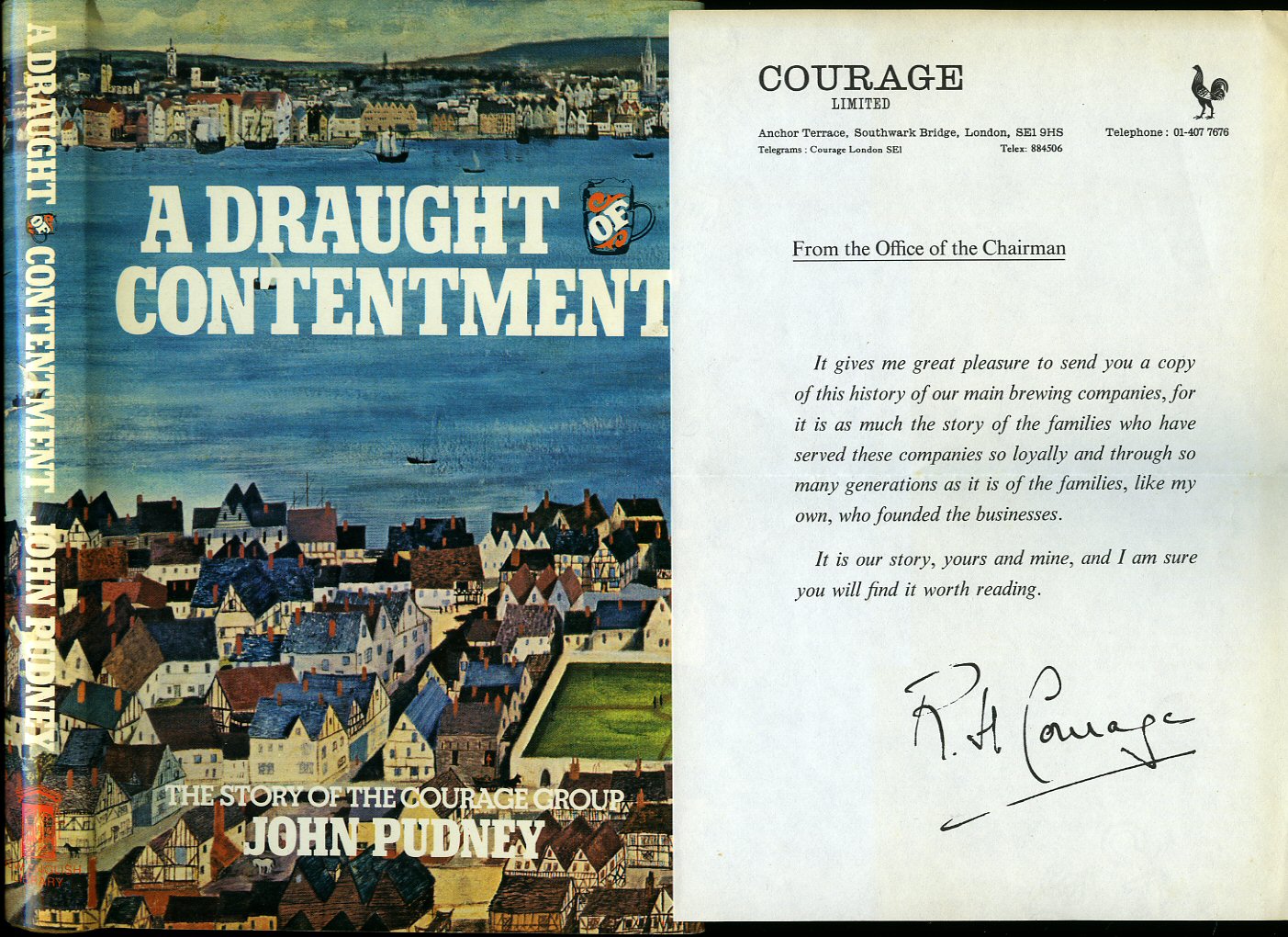 First edition hard back binding in publisher's original tan and brown paper covers with tan spine, gilt title and author lettering to the spine with gilt Courage Cockerel illustration to the upper panel. 8vo. 8½'' x 5½''. Contains 152 printed pages of text with sepia photographs throughout, compliment slip from Courage Limited loosely enclosed. Cheap paper browning. Near Fine condition book in Fine condition panoramic illustrated dust wrapper, not price clipped. Dust wrapper supplied in archive acetate film protection, this preserves and prolongs the life of the paper, it is not adhered to the book or to the dust wrapper. Member of the P.B.F.A.